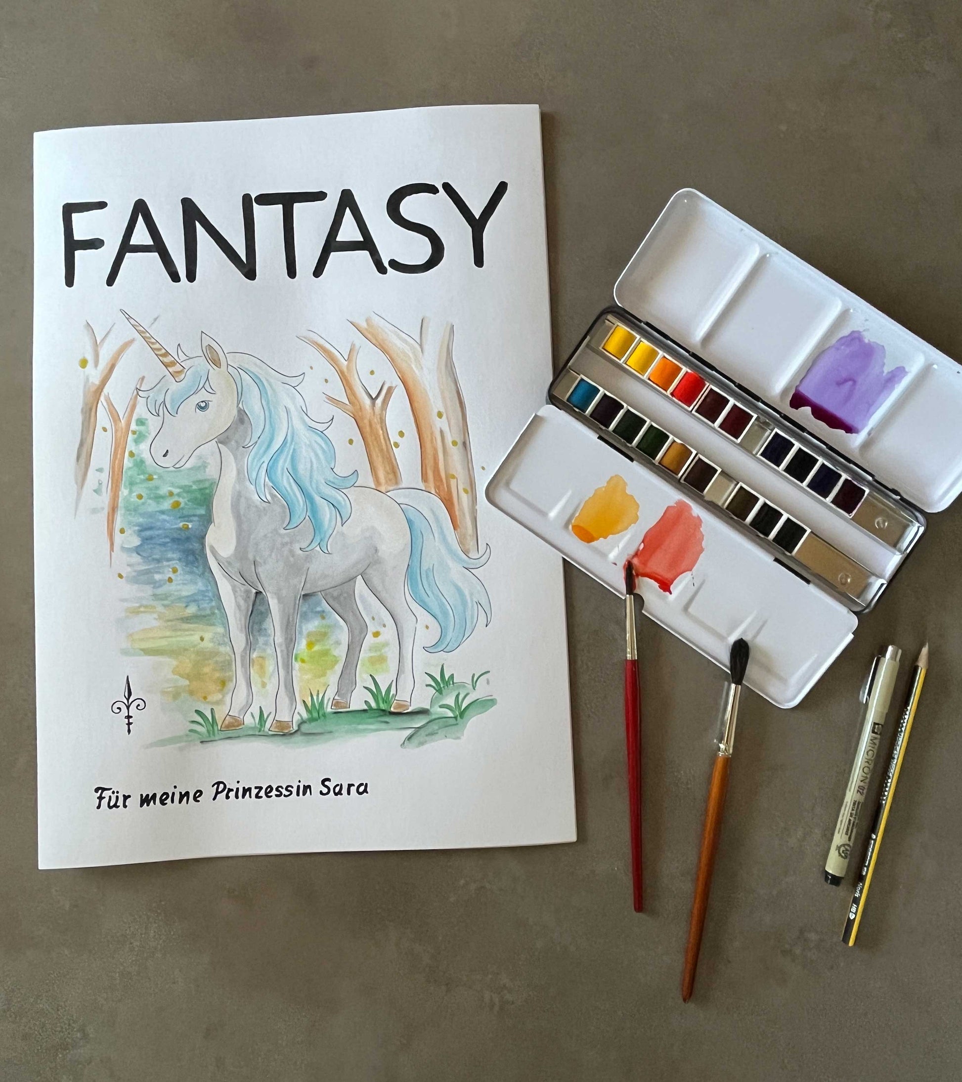 Handgemaltes Aquarell - Fantasy/Einhorn