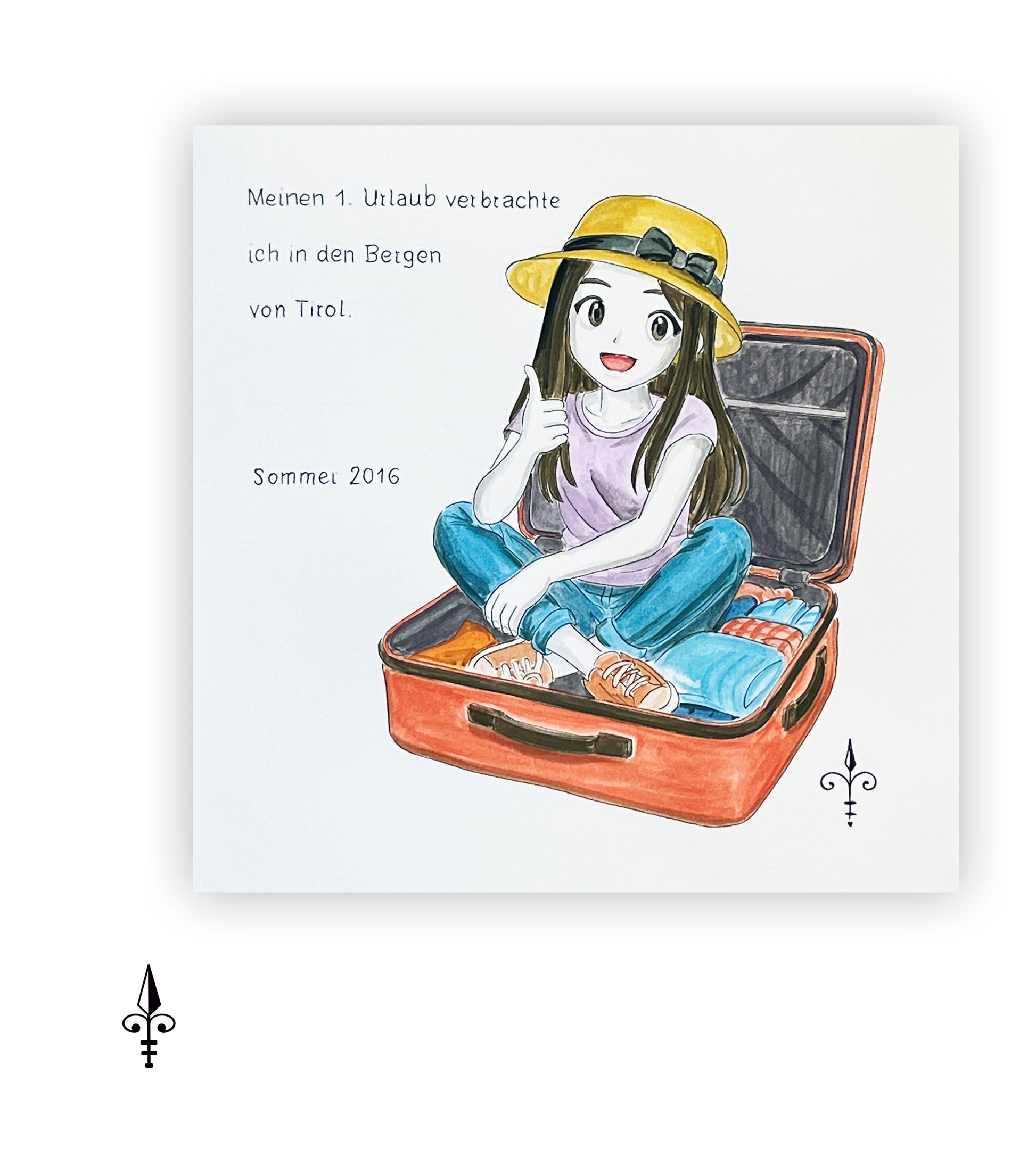Handgemaltes Aquarell - Reise/Mädchen
