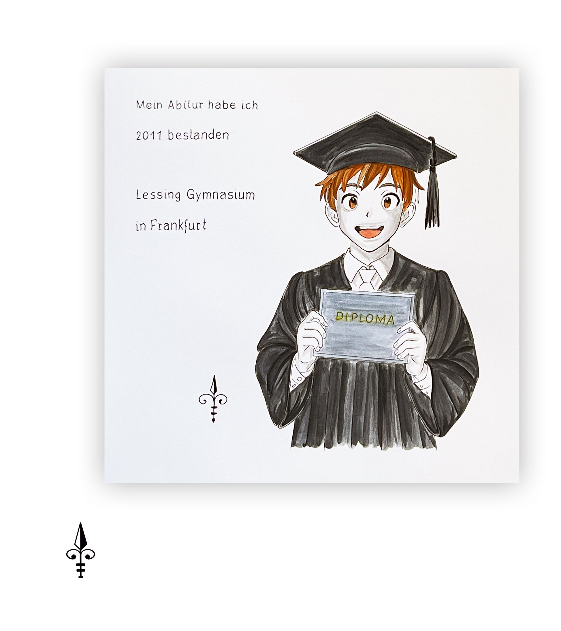 Handgemaltes Aquarell: Schulabschluss - Junge