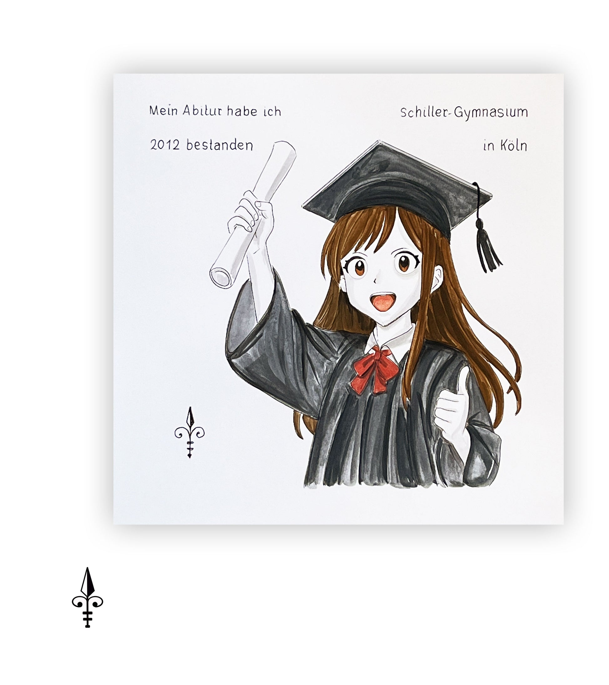 Handgemaltes Aquarell: Schulabschluss - Mädchen